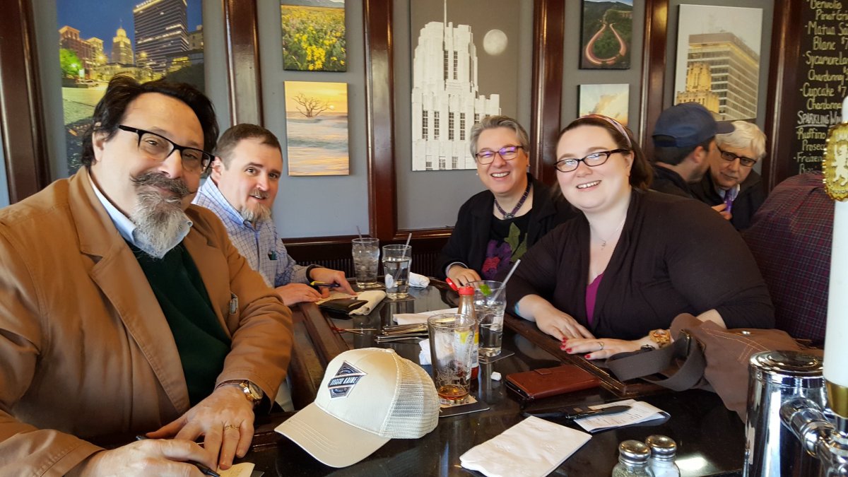 Left to Right: Charles “The Jew,” Chris “The Gentile,” Gail “Long suffering wife of the Jew who is also a Dr. and a future Rabbi,” and Helena “Minor Christian Celebrity”